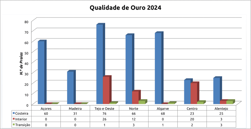Para receber a classificação de “Praia com Qualidade de Ouro, a água balnear tem de respeitar os seguintes critérios:
