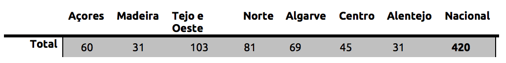• Top 5 municípios mais galardoados: Vila Nova de Gaia (19);  Almada (17); Matosinhos (14); Vila do Bispo (13) e Torres Vedras (12)